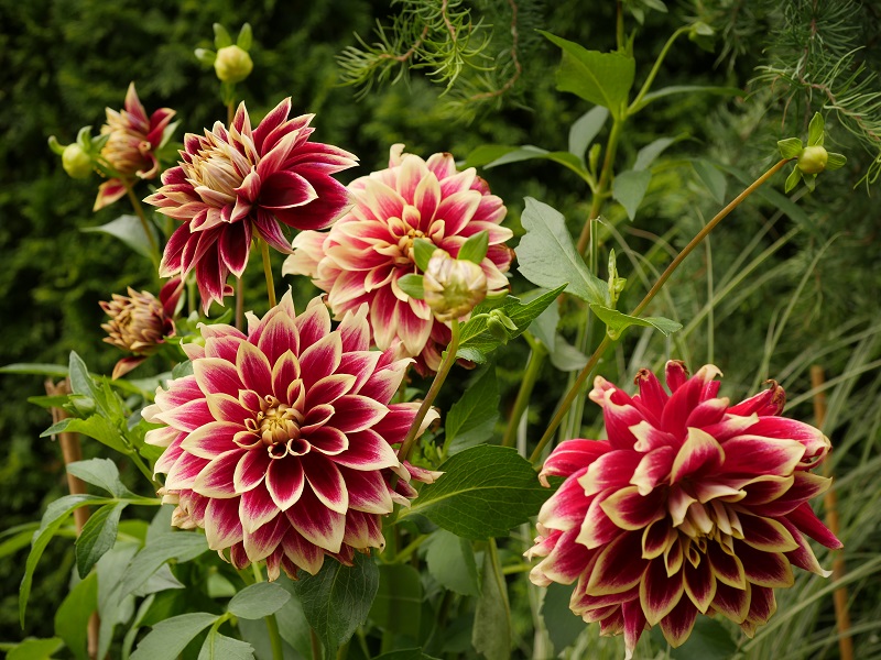 Ewuś a któraż to dalia tak Ci wpadła w oko? bo ta która tak zwiesza się na dół to jest bardziej żółto czerwona i wielka i w czasie deszczu tak łepetynki zwiesiła. A rutewka rosnie u mnie w kwaśnej glebie ale gliniastej