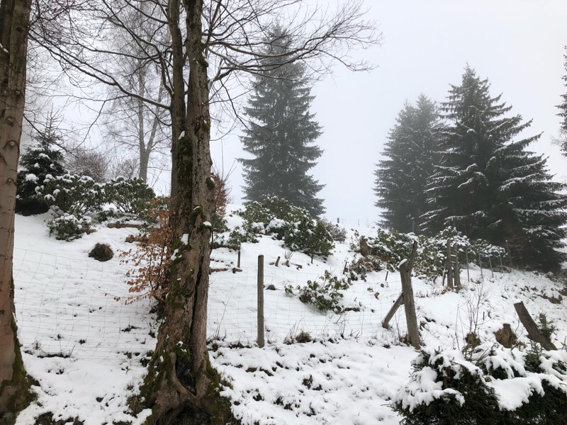 Zaraz na początku zachwycił mnie mocno nachylony stok obsadzony rodkami. Można sobie sobie wyobrazić ile pracy wymagało zasadzenie tych roślin a teraz chociażby ich nawożenie. Wiosną będą wyglądać obłędnie. Na zdjęciu tego tak nie widać ale pion niezły...To chyba była tylko cześć bo po przeciwnej stronie dom z dużym, zadbanym ogrodem.