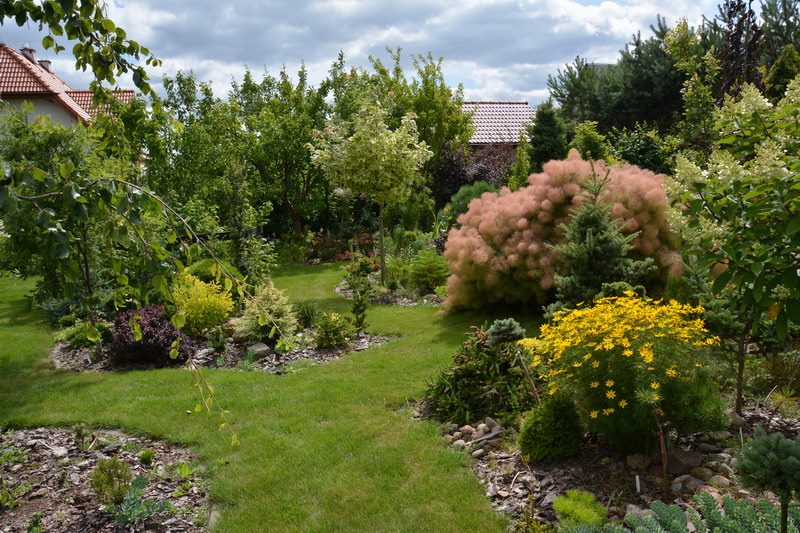 Sosny, magnolie i kamień polny....ogród zwyczajny. |