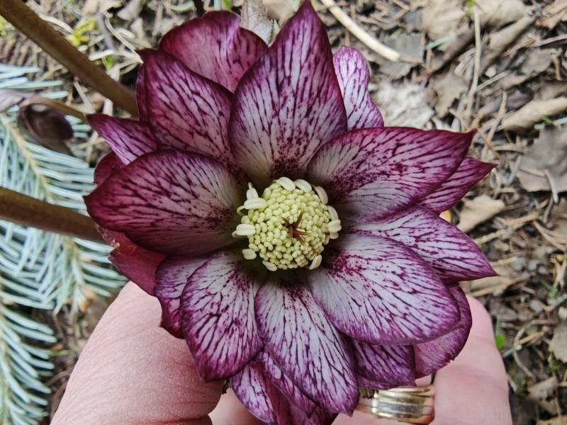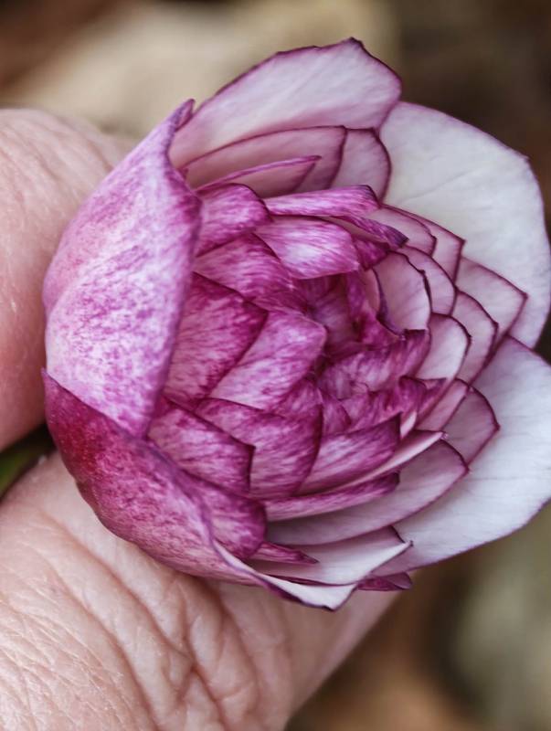 Przepiękna siewka dzisiaj ją znalazłam i to z rabatki z ciemiernikami Ellen Double. Natura się postarała.