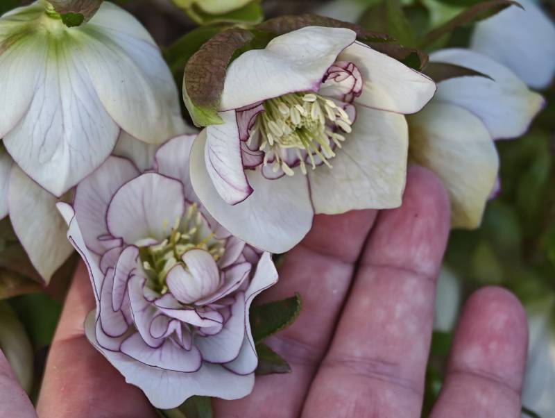 Rozwija się niespodzianka od mojego idola Mistrza Thierrego! Cóż ten człowiek wyczynia w tych ciemiernikach, to się opisać nie da słowami. Zachwycające ciemierniki, mam wrażenie, że nie pokazuje wszystkiego w socjal mediach. Zresztą roku by zabrało to wszystko pokazać. Byliśmy u niego sami, nie przy okazji dni otwartych, był załatany, bo się szykował na takie dni właśnie. Nie był to czas na przemyślane zakupy, gdyż ciemierniki stały już obcięte, ale wiadomo, kto nie ryzykuje nie pije szampana! Thierry znalazł czas, żeby nam pokazać i opowiedzieć o swoim mateczniku, tam były kwiaty, bo wiadomo, nasiona musiały dojrzeć. Cóż to za przeżycie. Nawet mi się udało trochę po francusku, w ogóle go nie znając wyrazić zachwyt. Thierry mówił francuskim angielskim, jakoś sobie poradziliśmy we troje z konwersacją. Dużo informacji zrozumiałam, rozmawialiśmy też o trillliach. Muszę wyjąć laptopa, w jego czeluściach mam zdjęcia z naszej wizyty.