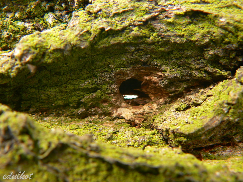 Natomiast z naszego dębu spadają płaty kory z takimi otworami, choć trociniarki nie widziałam bo to jest dobrych kilka metrów nad ziemią, ale podejrzewam że to ona.