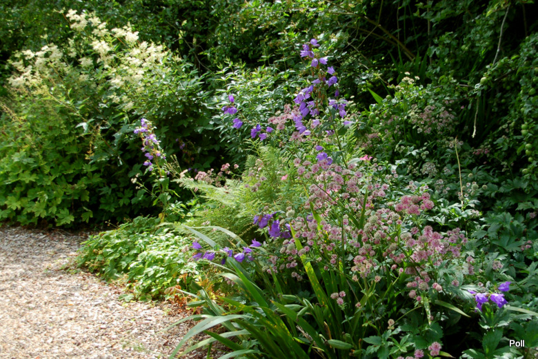 Woda przepływa w poprzek ogrodu, więc przechodzimy przez obrośnięty bylinami mostek...