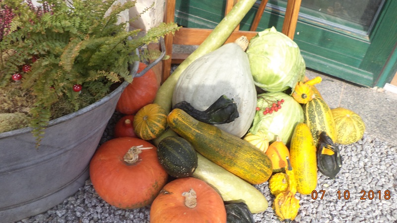 Przed wejściem natomiast do dyniowej kompozycji, ułożonej jeszcze przez Marcina dołożono kilka nowych okazów i dwie główki kapusty.