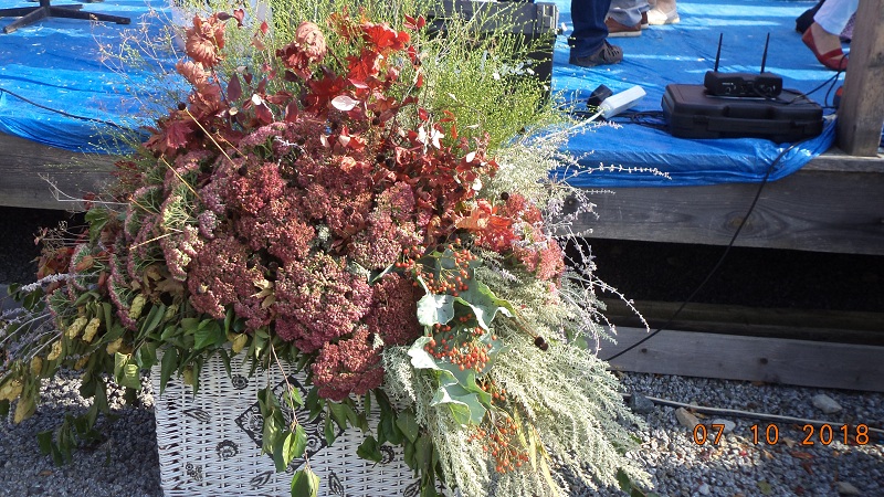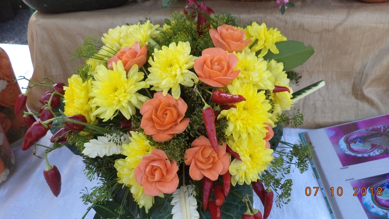 Całe dekoracje stanowiły : bukiet i trzy kosze kapusty ustawione przed sceną.