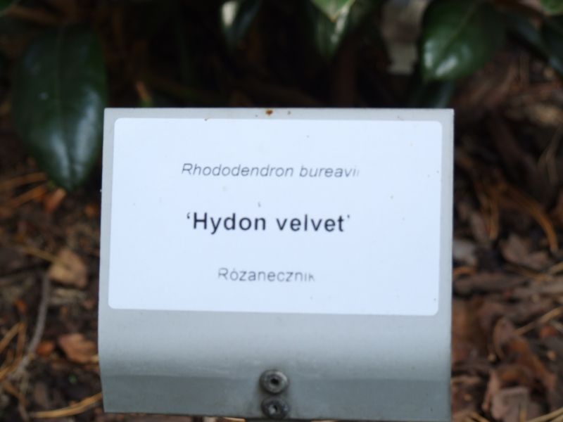 - różanecznik 'Hydon Velvet' to nie jest wyselekcjonowana forma gatunku R. bureavii (a hybryda R. bureavii), więc tabliczka zawiera dwa błędy,
