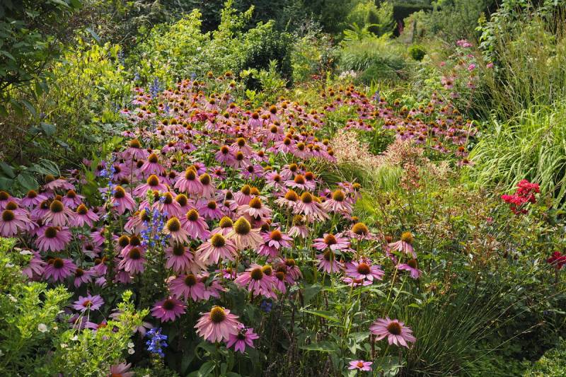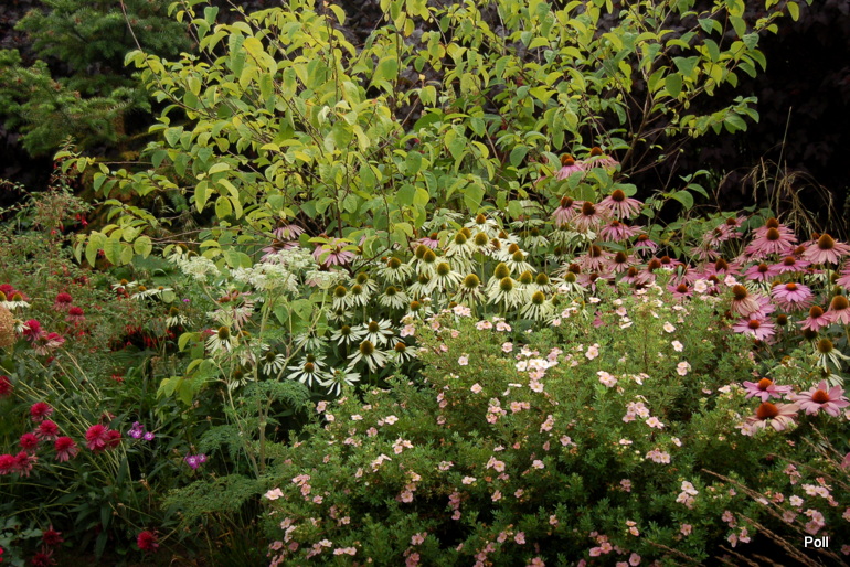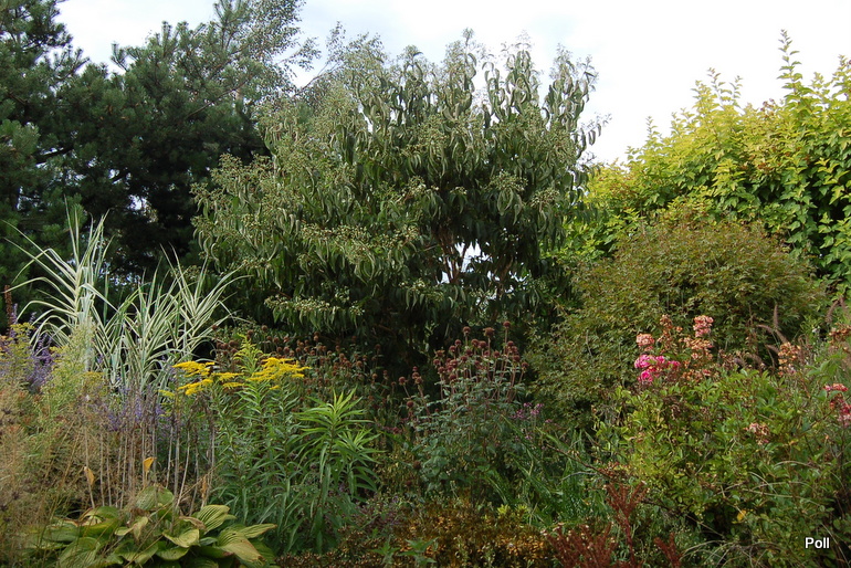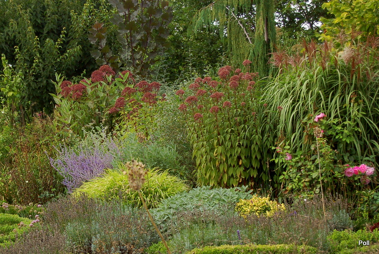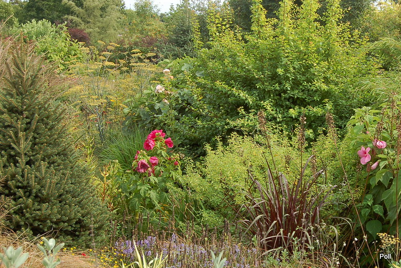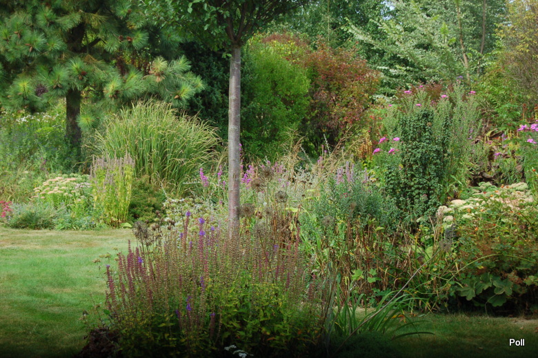 Gdy zawrócimy w stronę domu, znajdziemy się na terenie 'głównego' ogrodu i rozciągnie sie przed nami taki, kipiący roslinami widok...