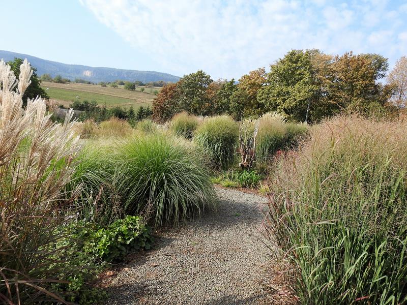 Gdy dotrzemy na górę i nasycimy się widokiem, możemy wybrać wśród wystawionych tam , trawy, jakie nam się spodobały...Bogactwo miskantów (ale i innych gatunków) spowodowało u mnie bicie serca , więc chyba z 2 godziny buszowałam , wybierając trawy do mojego ogrodu.