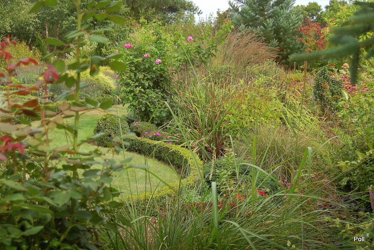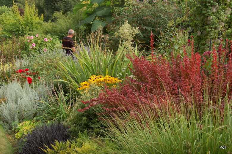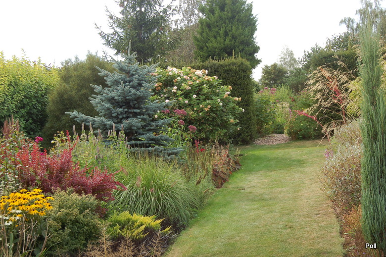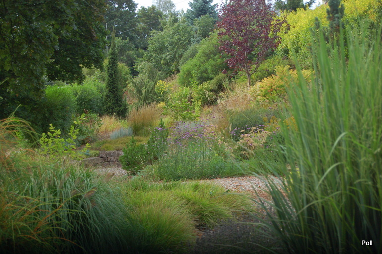 Wspaniale położony na stoku, z cudnym widokiem na majaczący w oddali Szczeliniec , ma tę przewagę nad innymi ogrodami, że teren 'współpracując z Kasią i Tomkiem, pozwolił na stworzenie niebanalnego miejsca. Jednoczesśnie, nie jest to teren łatwy, więc kształt ogrodu i poszczególnych pokoi, wymuszony jest niejako przez górskie warunki. Nie chciałabym też, aby ktoś pomyślał, iż jest to założenie na miarę Wojsławic.... Tak nie jest, bo ogród w Radkowie jest ogrodem wiele mniejszym i kameralnym, ale jednak wartym odwiedzenia.