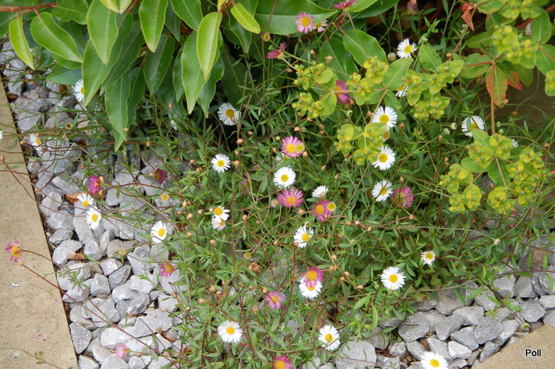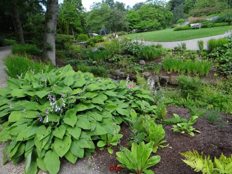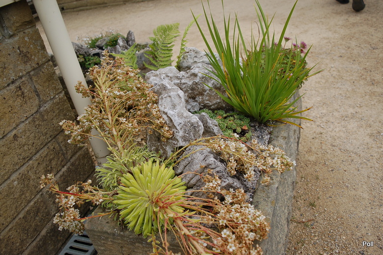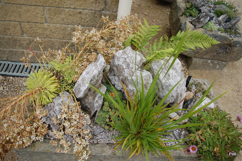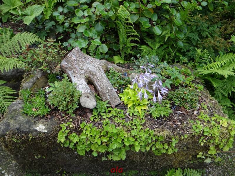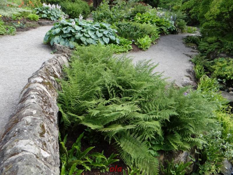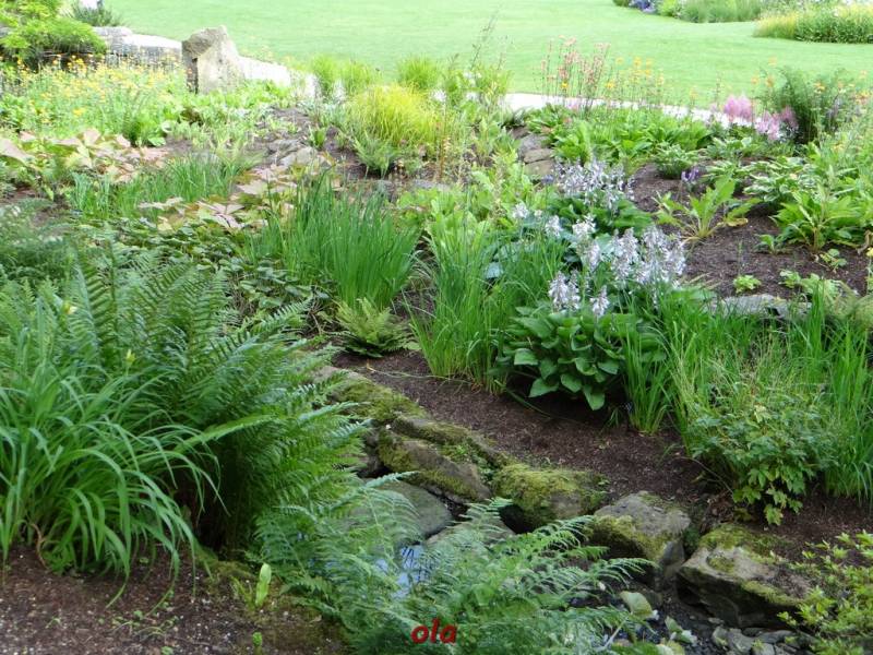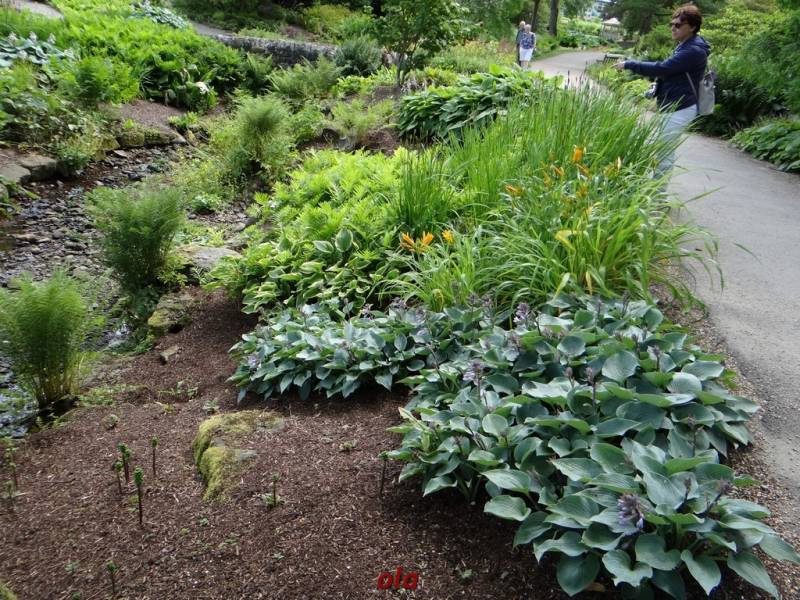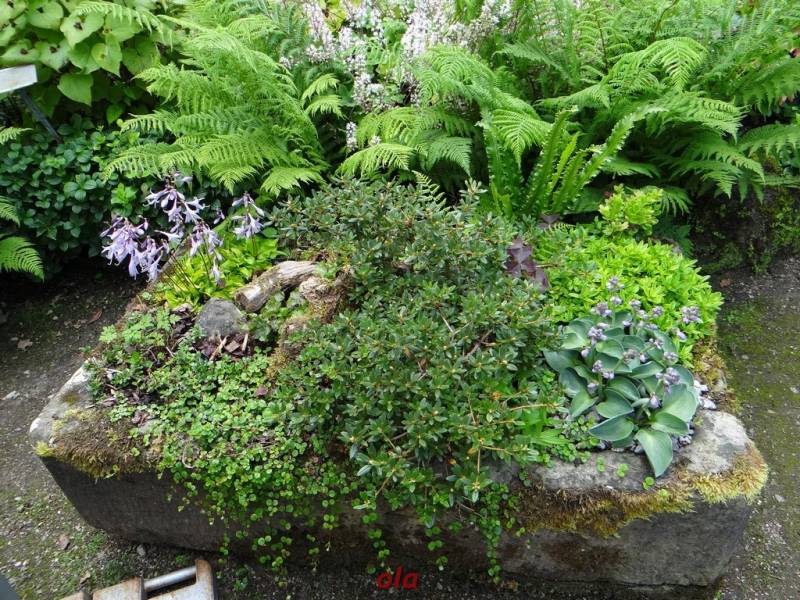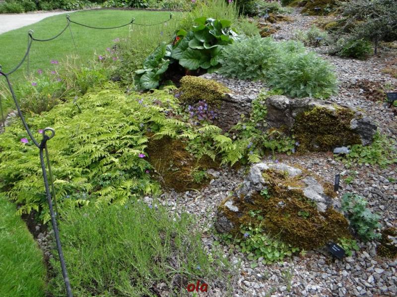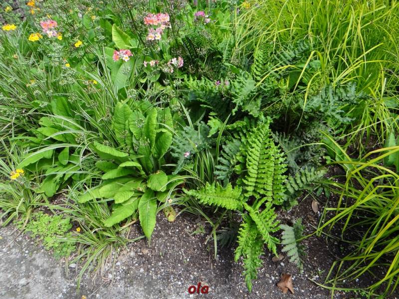 W tym maleńkim przedogródku zastosowane - jak widać - różne rośliny : zarówno na stanowiska słoneczne, jak i do cienia. Miło, że pomyślano również o paprociach