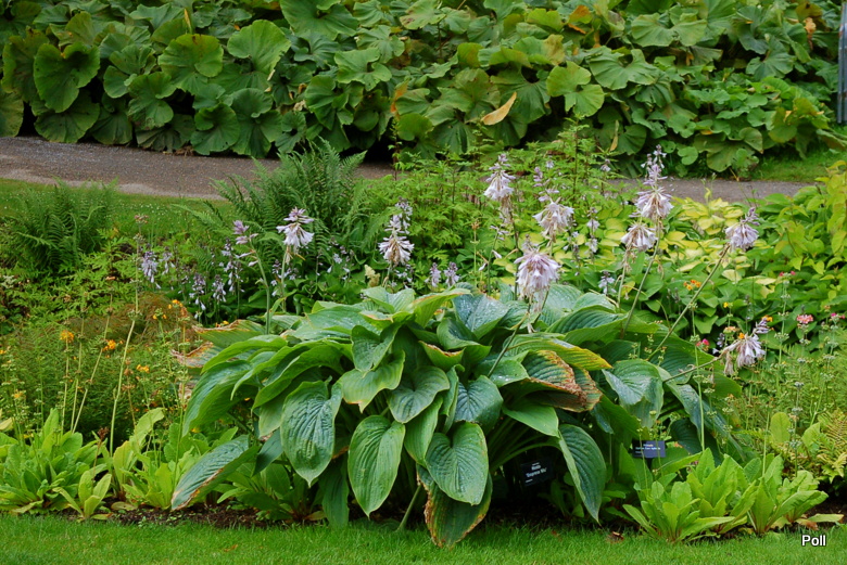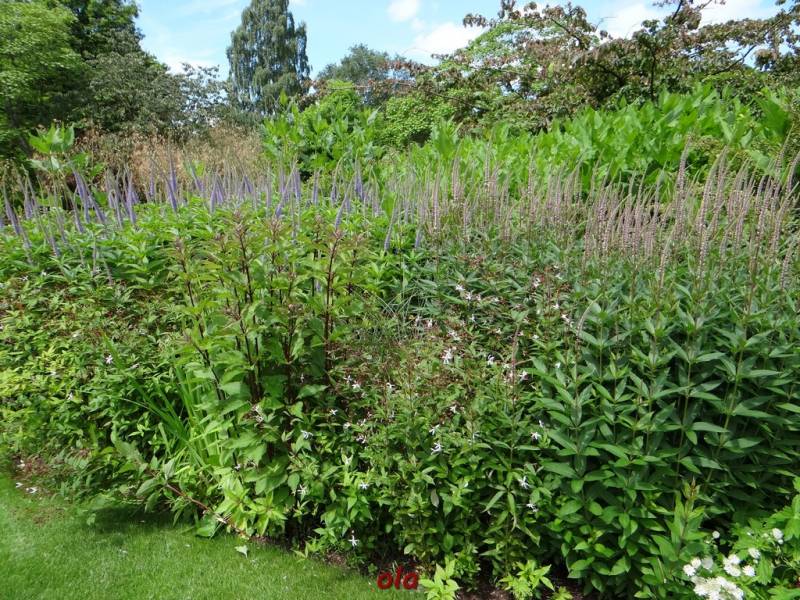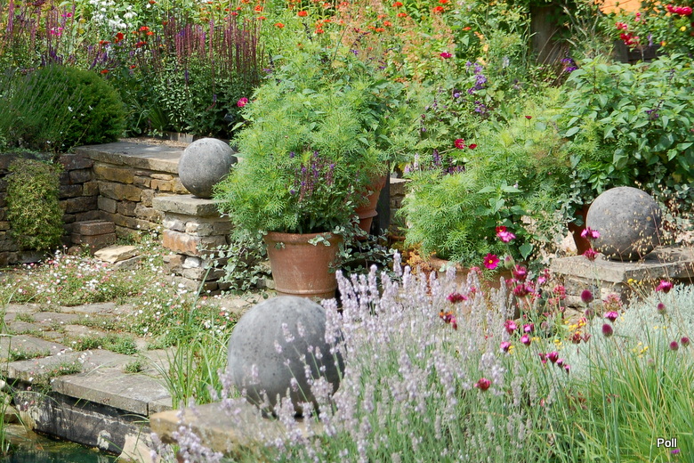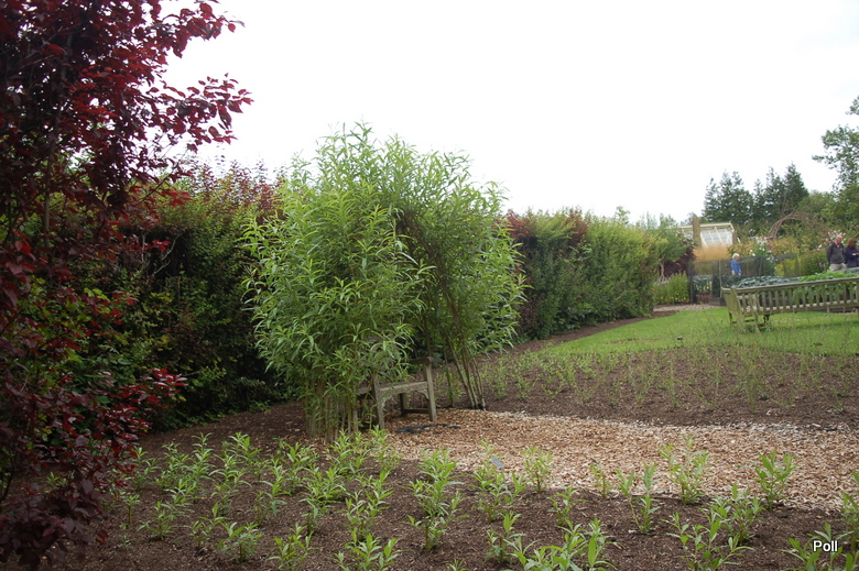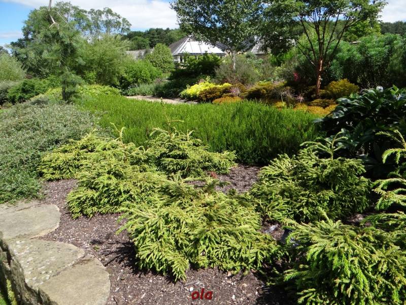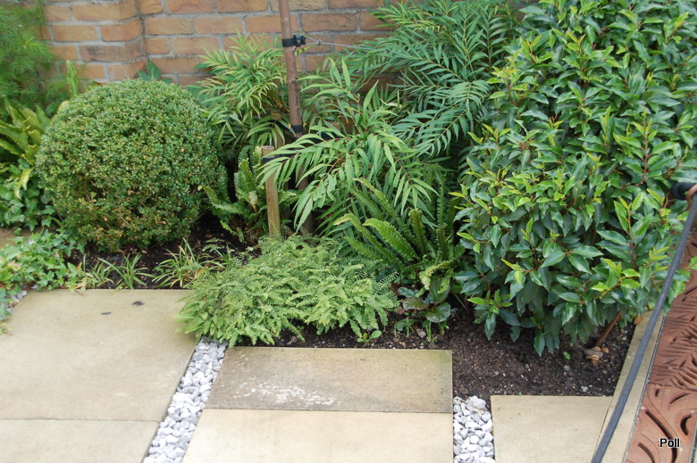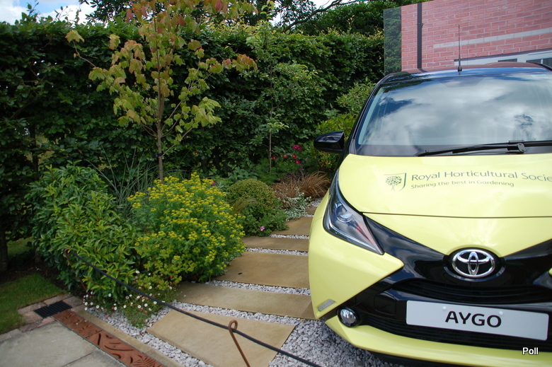 Taka właśnie nieduża hybryda(opatrzona w logo RHS), stoi w centralnym punkcie przykładowego przedogródka, który pokazuje, iz mimo niewielkiej ilości miejsca, może być zielono i roślinnie