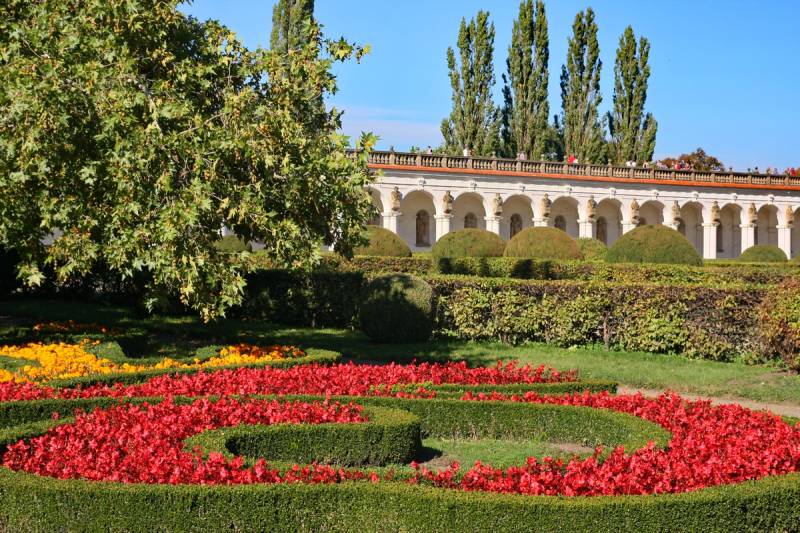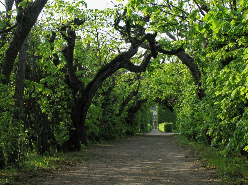 W ogrodzie znajduje się kolumnada o długości 224 m z posągami przedstawiającymi postacie z mitologii greckiej.
