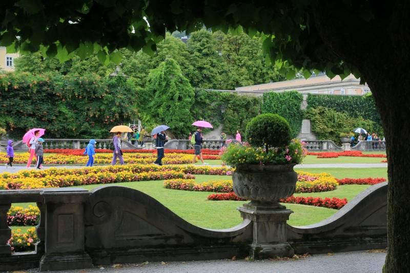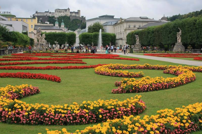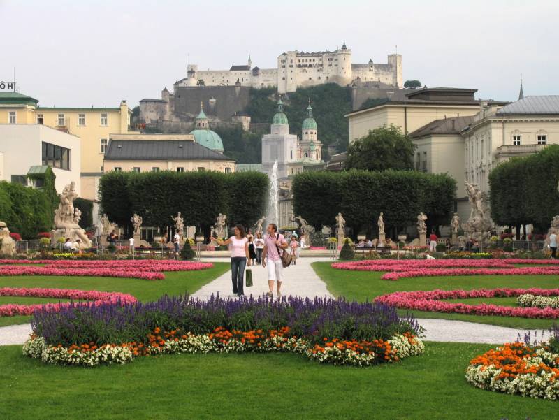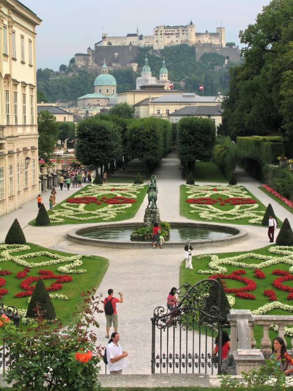 Oś widokowa ogrodów skierowana jest na barokową katedrę i średniowieczną twierdzę. To najpopularniejszy motyw fotograficzny w Salzburgu!