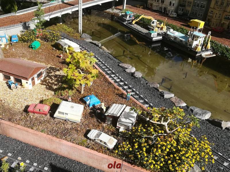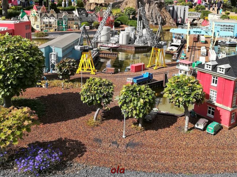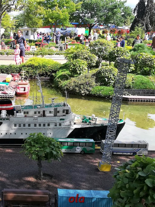 Całość robi niesamowite wrażenie ....wśród tej zieleni , samochody jeżdżą , statki pływają , wiatraczki się kręcą .