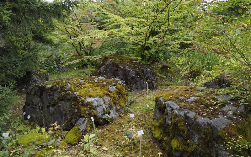 Ogród zainteresuje nie tylko miłośników roślin. Kolejnym jego atutem jest mnogość rodzajów skał użytych do kształtowania krajobrazu. Występuje tu około 30 różnych ich rodzajów.