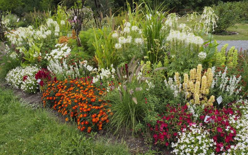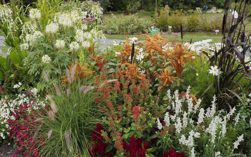 Zaczyna się od typowych letnich rabat, a wejście znajduje się przy szklarniach.