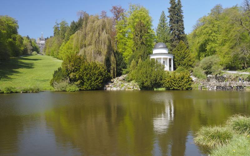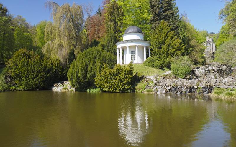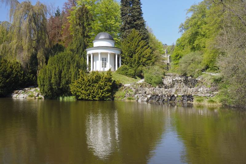 Założenie jest pełne również wielu innych atrakcji. Znajdują się tu liczne małe świątynie, pozostałości chińskiej wioski oraz Löwenburg – romantyczne, neogotyckie ruiny zamku rycerskiego.