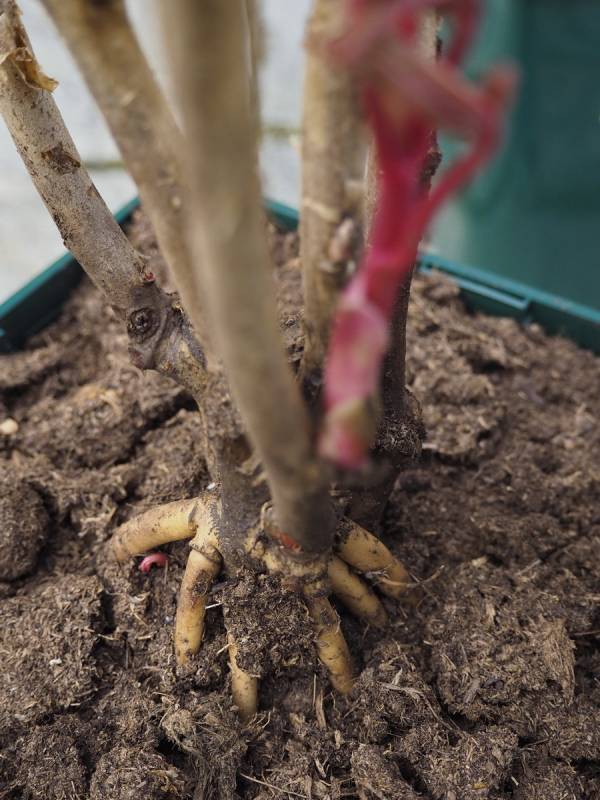 a po drugie i najważniejsze by pęd peoni drzewiastej mógł się sam ukorzenić. W Stanach sprzedaje się rośliny już na tym dalszym etapie, gdy sadzonki peoni drzewiastej wytworzą własne korzenie.