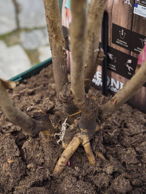 Ostatnio w OBI kupiłem dwie drzewiaste nn ale skusiłem się właśnie dlatego, że rośliny były mocno rozkrzewione i miały już własne, grube korzenie. Poniżej zdjęcia pokazujące z bliska dół roślin