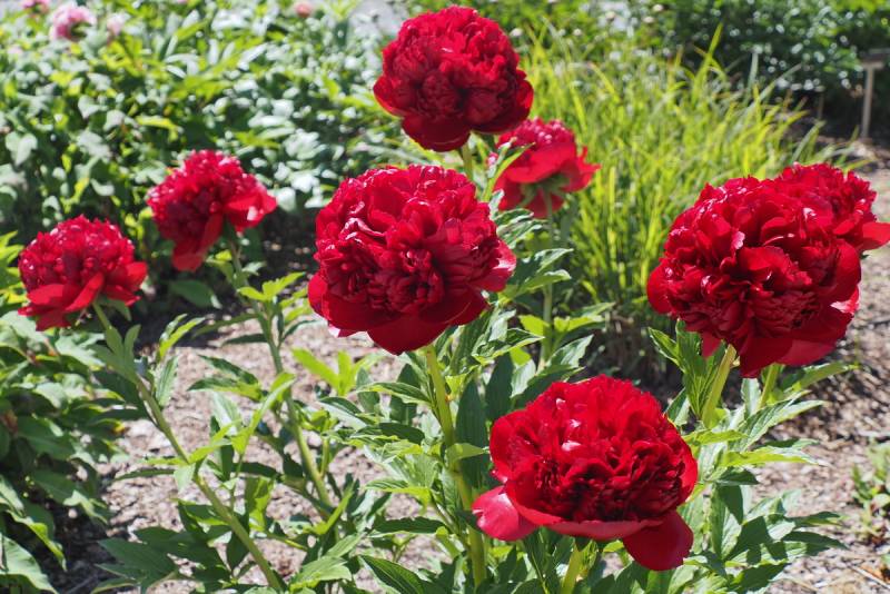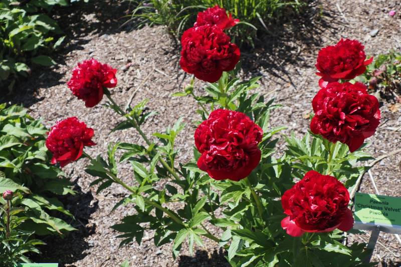 Hodowca: Roger F. Anderson (USA 1992) Kwiaty: pełne, wyglądają jak gigantyczne, czerwone kule w atrakcyjnym świątecznym odcieniu z wieloma aksamitnymi płatkami, nazwa odmiany bardzo trafna (Ø: 15 cm) Wysokość: około 80 cm Liście: żywo-zielone, stosunkowo drobne i zwarte Pęd: bardzo mocne, kwiat ładnie wyrasta ponad krzew, odmiana obficie kwitnąca Termin kwitnienia: koniec maja