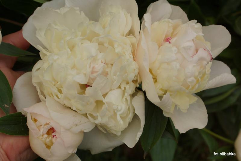Marysiu, ja mam zarówno piwonię 'Shirley Temple' jak i 'Festiva Maxima' - obie mają różowe maźnięcia,