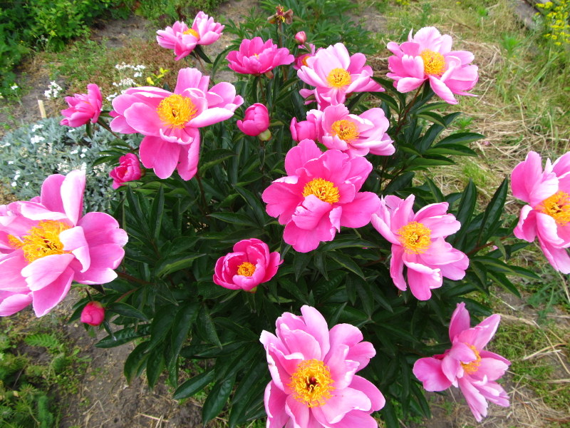 Hodowca: piwonia znaleziona w Chinach Kwiaty: pojedyncze mimo, że mają dwie warstwy płatków, o średnicy wg różnych źródeł od 12 do 20 cm. Płatki lekko "potargane" w kolorze "cukierkowego" różu. Bardzo gęste jaskrawo żółte pręciki. Zapach: przyjemny dość intensywny Wysokość: ok. 70 cm Liście: ciemnozielone, błyszczące Pęd: sztywny Termin kwitnienia: wczesny ww tekst Puszek