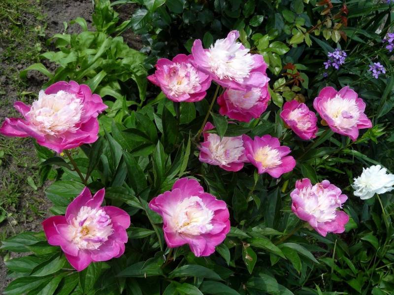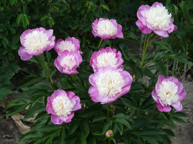 Piękne dwukolorowe kwiaty zaczynają kwitnienie w I dekadzie czerwca. Pachnie delikatnie.