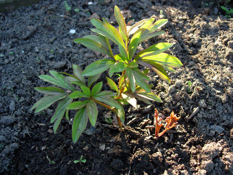 Myślę, że to nie tylko moje staranie, ale długi sezon i dobre warunki wegetacji spowodowały, że moje młode peonie mają w większości dwukrotny przyrost ilości kłów (i pąków kwiatowych). Mam około 70% nowych peonii, które były wsadzane wiosną 2013 roku. Niektóre zakwitły już w 2015 roku. Kłącza były bardzo małe, w 2013 wypuściły po 1 miniaturowym liściu. W 2014 był już normalnej wielkości liść przez cały sezon.