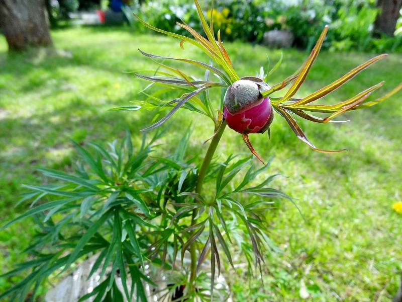 Więc po szczegółowych oględzinach doszłam do wniosku, że ta niby moja tenuifolia to wcale nie tenuifolia lecz mieszaniec Paeonia lactiflora x tenuifolia.