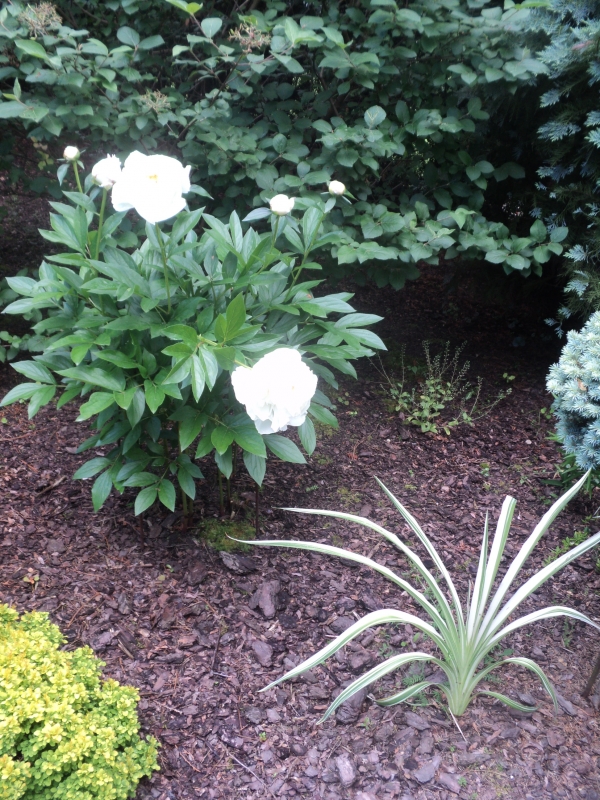 Jednak ogólnie jestem zadowolona, bo peonie są różne (widać po liściach) i jeszcze dobrałam 3 od sąsiadów. (Jedna pudrowy róż, druga powinna być Festiva Maxima i trzecia to późna różowa - kwiat wielkości talerzyka hu_rra - oczywiście do zabawy w rozpoznawanie za rok).