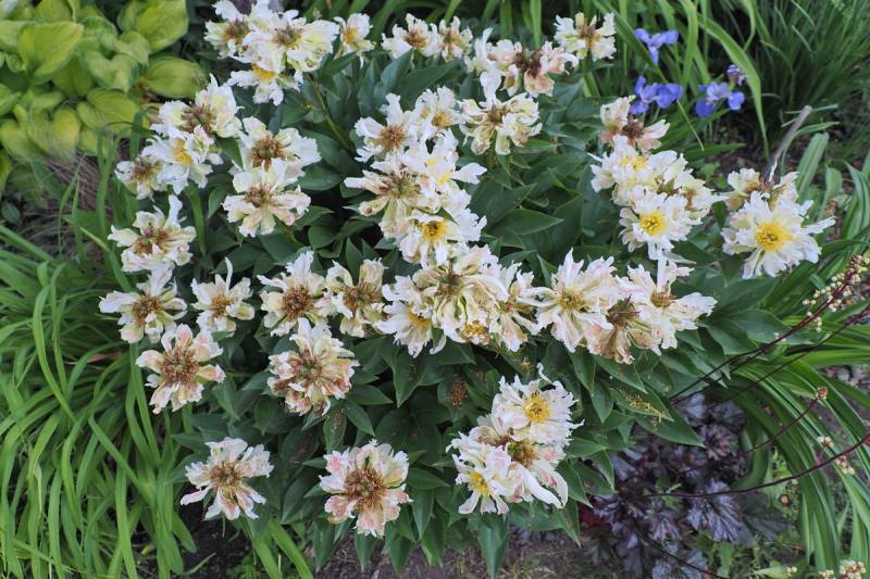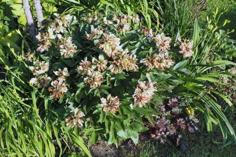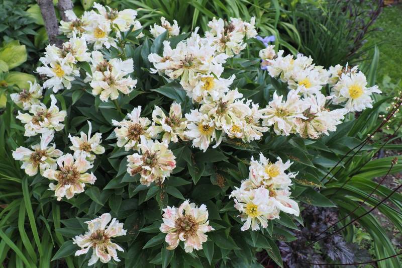 Piwonia 'Green Lotus' w tym sezonie nie tylko zakwitła obficie ... ale zauważyłem że jej kwiaty utrzymują się na krzewie prawie przez cztery tygodnie.