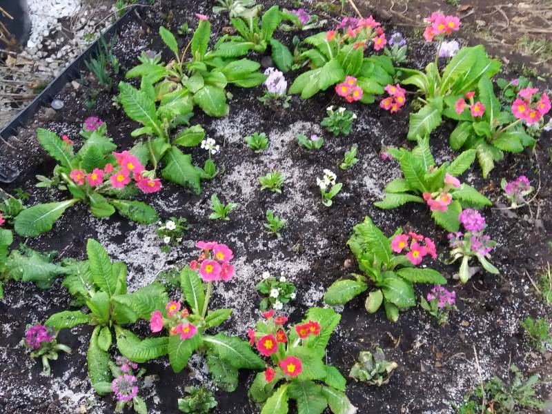 I jeszcze prymulki ogrodowe zakupione w Lidlu oraz samosiejki :slonko