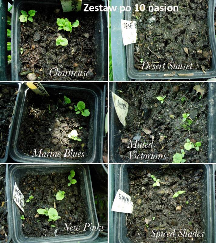 Muszę jednak powiedzieć, że w Barnhaven też nie jest tak idealnie z nasionami. Ja nie zamawiałam Muted Victorians tylko Striped Blue, a żadna pasiasta się nie zapowiada i to w dodatku niebieska. Na 35 nasion uzyskałam jednak ~ 16 siewek, to chyba dobry uzysk. Głównie różne odcienie fioletu się zapowiadają jak dotąd. Jeden czerwony