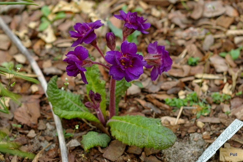 Ta prymula, to starsza odmiana o hybrydowym pochodzeniu. Nie należy do najwyższych prymul – razem z kwiatami dorasta do 12-20 cm. Jej ciemnozielone liście mają nieco brązowawy odcień i w ciepłych miejscach mogą się utrzymywać nawet w zimie. Kwiaty przepiękne - duże, podwójne, głębokiego fioletowo-purpurowego koloru.