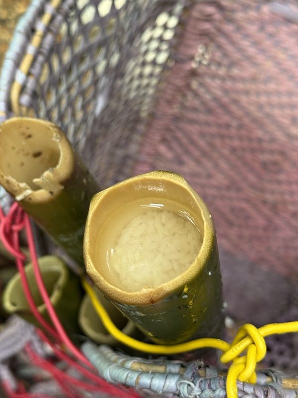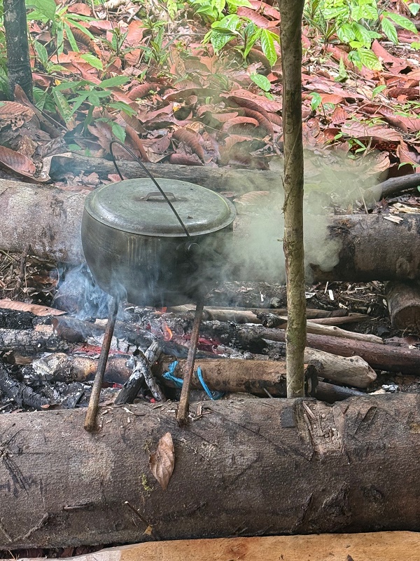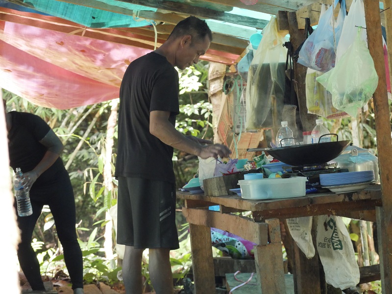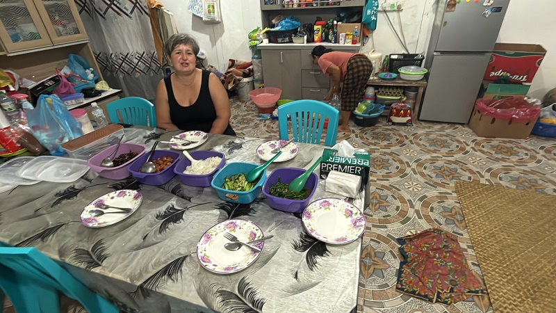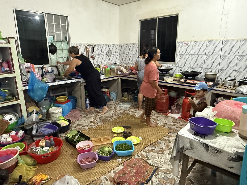 Wspólne przygotowanie posiłku w kuchni "szefowej"klanu. Wszytko przygotowują na ziemi, na ręcznie plecionych matach. I tylko specjalnie dla nas, przygotowali stół- w zasadzie nie wiem dlaczego bo wolałabym na ziemi...