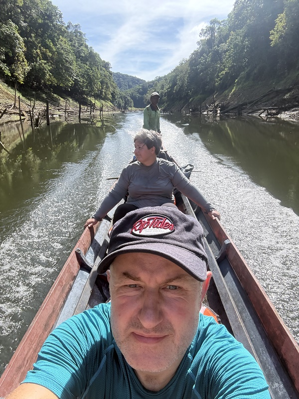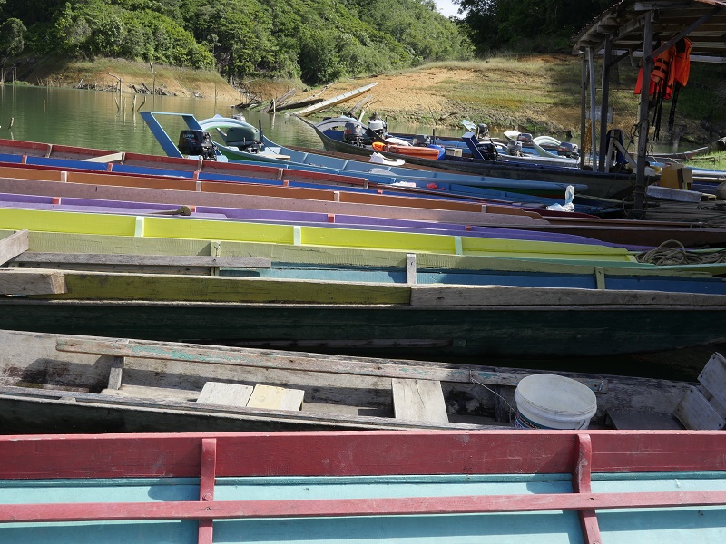 Po 4 godzinnej podróży dotarliśmy do przystani na Batang Ai Reservoir - sztucznie utworzony zbiornik o powierzchni 8500 hektarów. Olbrzymi i piękny... Tam ładujemy się do łodzi i po prawie godzinie wysiadamy u Ibanów.