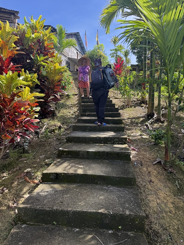 Na Borneo znajdują się trzy państwa: Indonezja, Brunei i Malezja. My byliśmy tylko w części malezyjskiej. Z wyprawy po rzece Kinabatangan w na "górze" Borneo, w stanie Sabach, polecieliśmy do Kuching w stanie Sarawak i tam zaczęliśmy naszą podróż do długich domów Ibanów i dżungli. Żeby dotrzeć do społeczności łowców głów, pokonalismy najpierw jakieś 250 km samochodem, z przerwą na lokalnym targu, żeby zakupić prowiant na całe trzy dni. Nabyliśmy również "ichniejsze" buty do łażenia po dżungli (tak zwanych adidas kampung) Notabene sprawdziły sie idealnie.. takie nasze obcięte do kostek, wyprofilowane gumowce z bieżnikiem. Oczywiście miejscowy miód od dzikich pszczół tez trafił do plecaka...