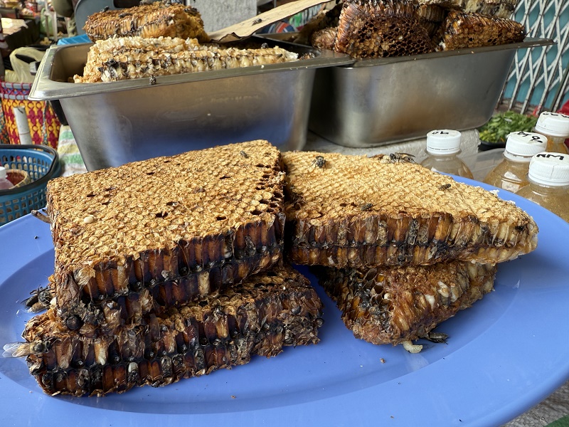 olbrzymie, żywe larwy.. podobno pyszne.. o orzechowym smaku... musiałam uwierzyć na słowo bo nie odważyłam się skosztować...
