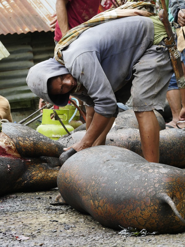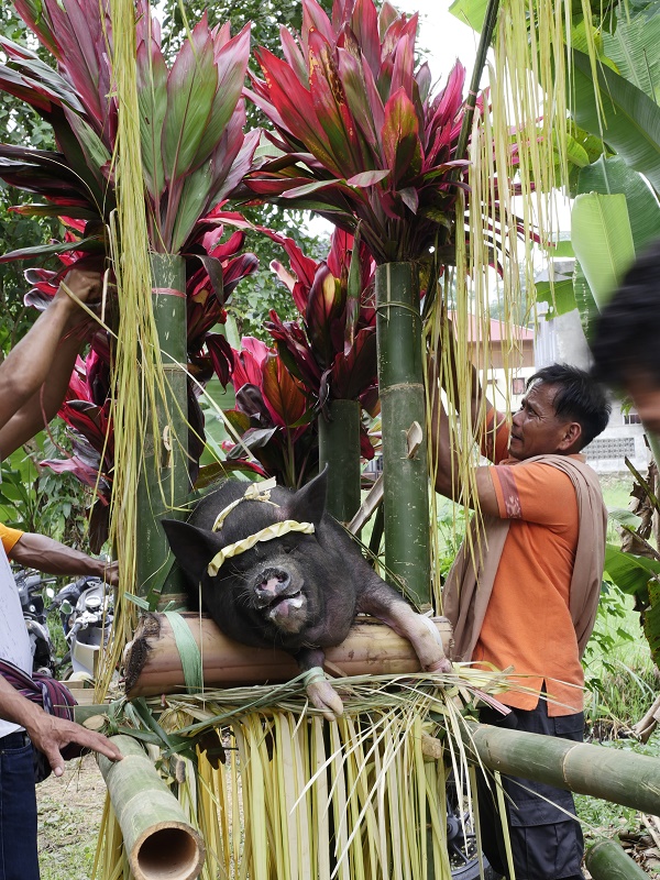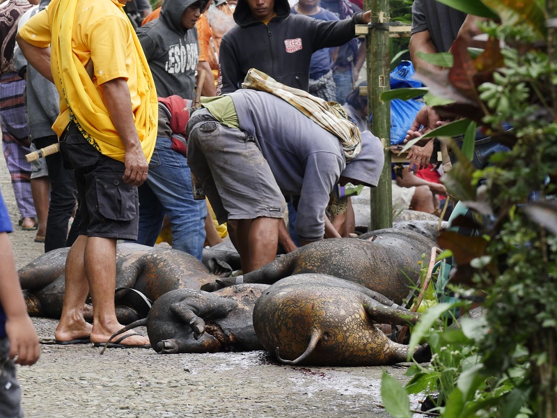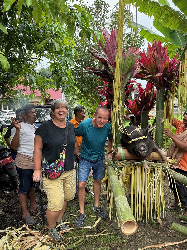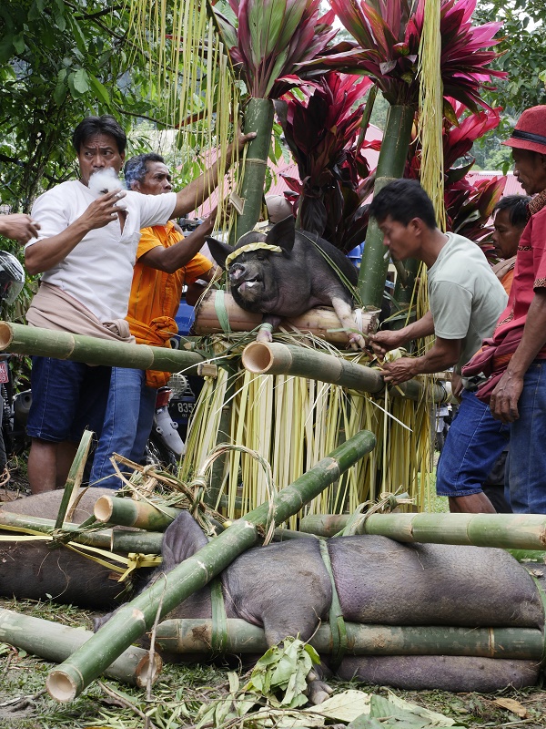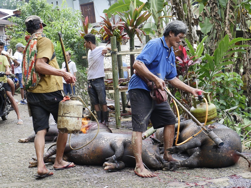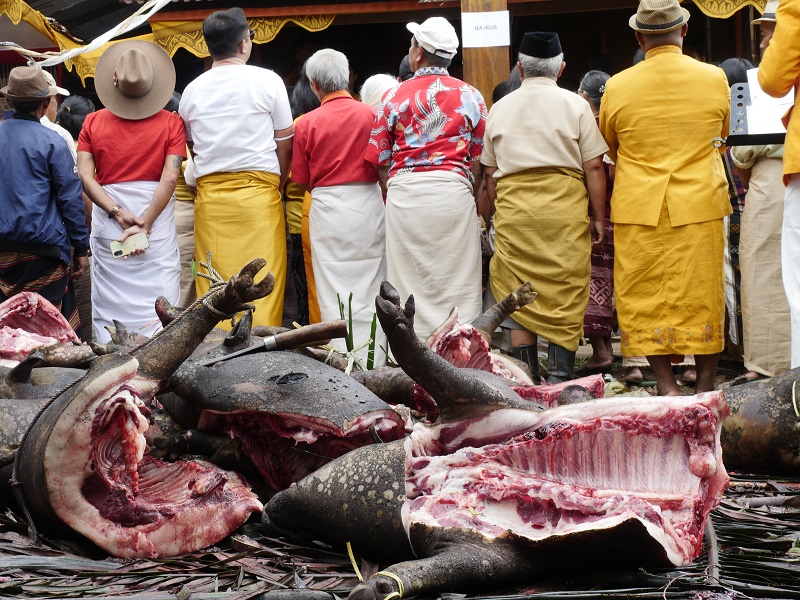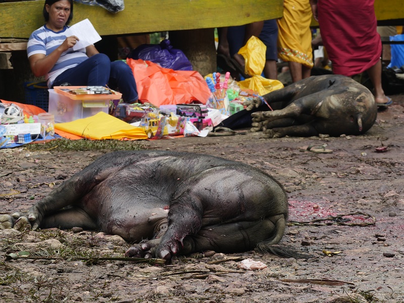 Tu, dla niektórych, mogło by być ekstremalnie ... bo o ile na pogrzebie bawały już tylko jedliśmy, o tyle tutaj widzieliśmy rytualny ubój świń..