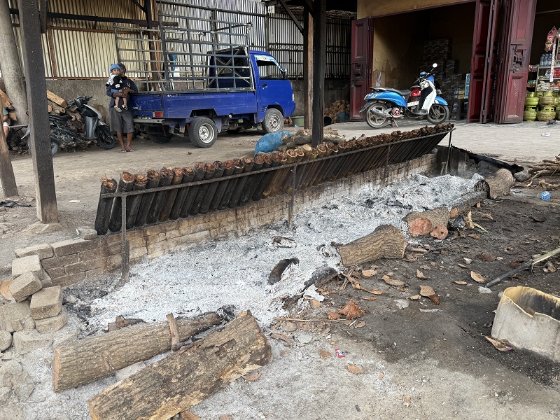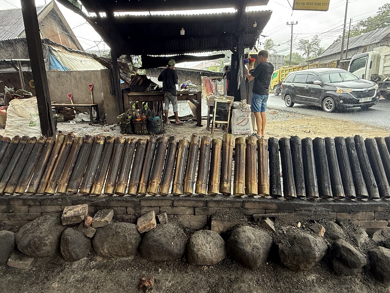 Podczas podróży nasz przewodnik zatrzymuje sie przy drodze i dostajemy w prezencie ryż gotowany przygotowany w bambusie z mielonym kokosem i brązowym cukrem... pyszne to było choć wyglądało nienajlepiej :P
