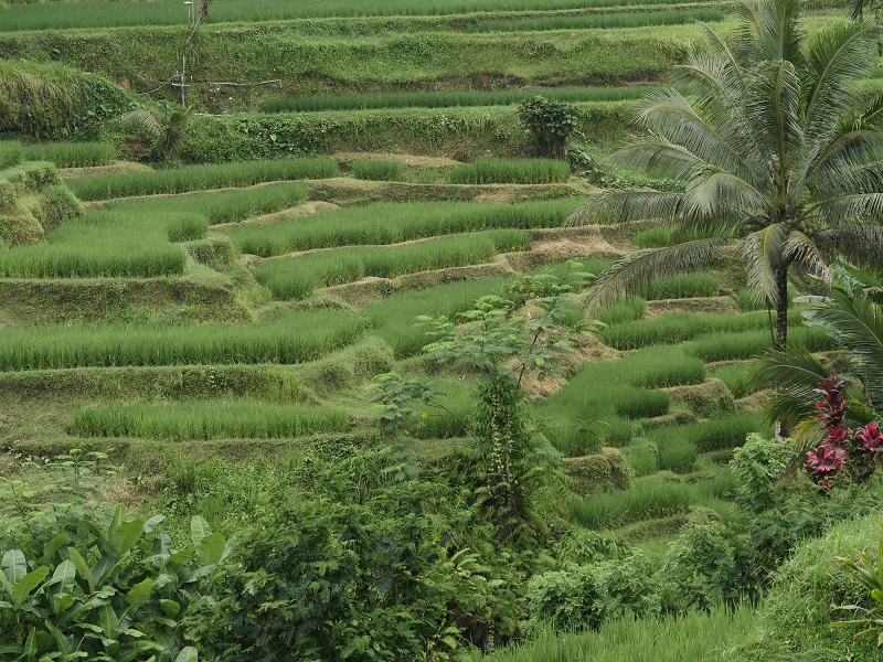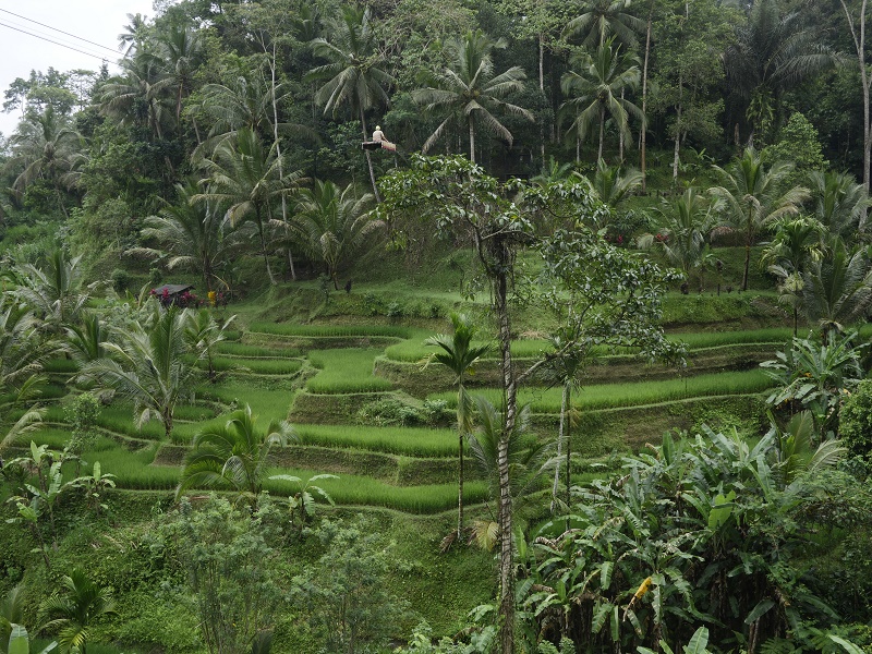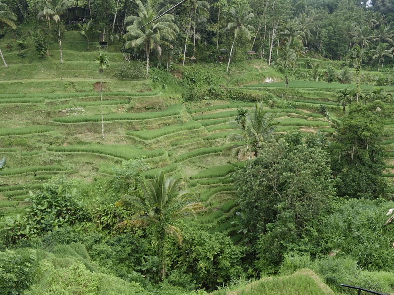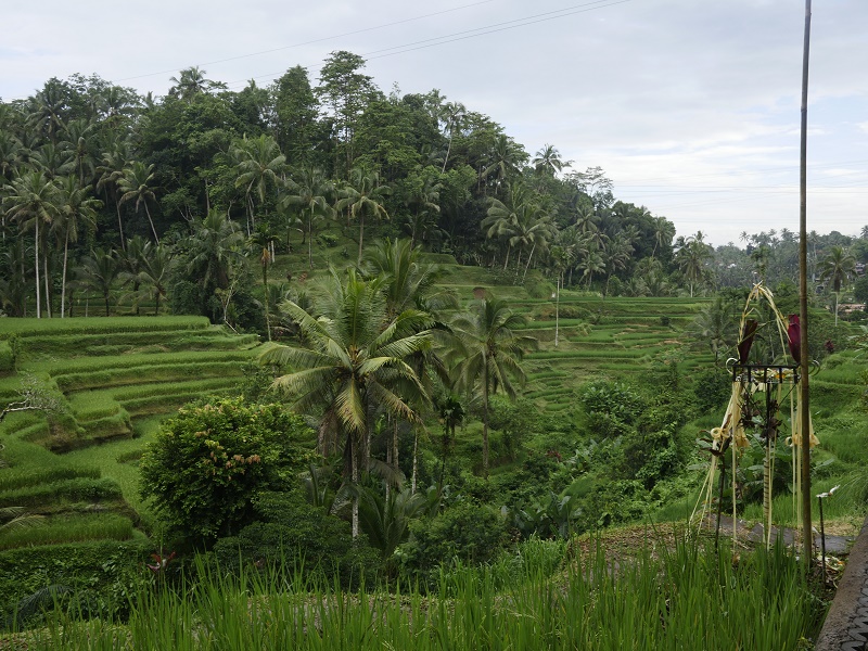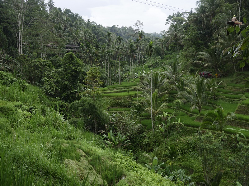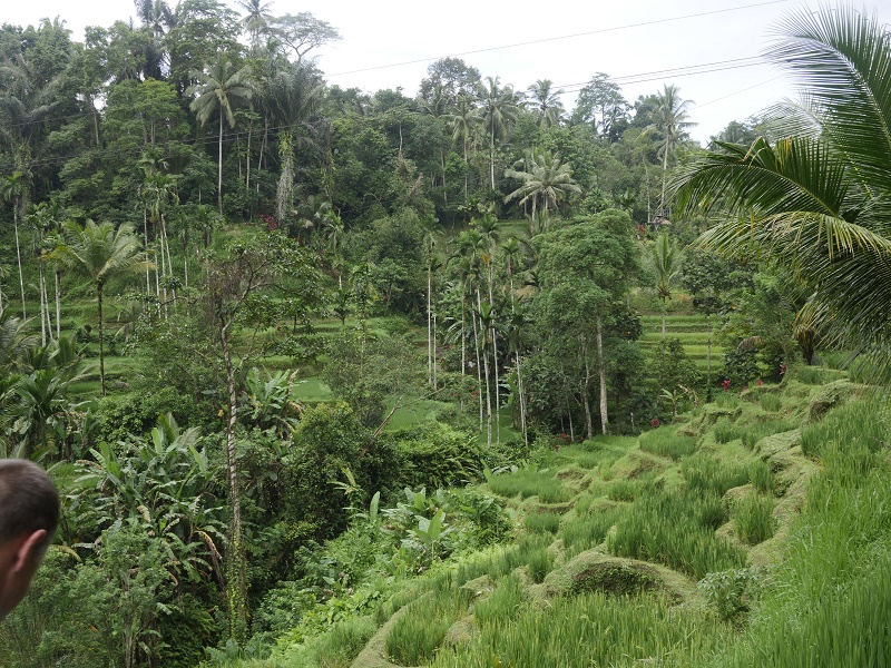 Ale pojechaliśmy do najbliższych tarasów ryżowych- tego nie nie udało nam sie zobaczyć ostatnim razem. Trafiliśmy do Tegallalang- ładnie ale miejsce nastawione na zarobek... Latające dywany na linach, chuśtawki z kieckam i inne atrakcje to zdecydowanie nie nasza bajka. Dobrze, że pogoda była deszczowa to ludzi było niewiele, a zieleń pięna..