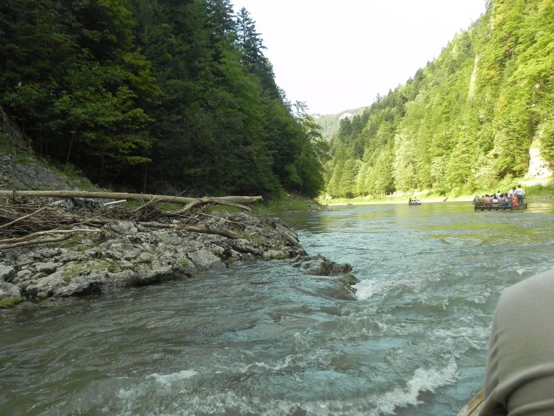 Kto choć raz płynął Dunajcem ten wie, że to niesamowite przeżycie, a kto tego jeszcze nie dokonał niech zrobi niezwłocznie! Widoki nie do opisania, płynie się przełomem pomiędzy wysokimi skałami, dzika przyroda wręcz schodzi do brzegu, można zobaczyć po drodze sporo ptactwa, nam się udało np. bociana czarnego (niestety bez zdjęcia :-(). Zdjęcia nie oddają urody tego miejsca. Jedno info techniczne i kończę gadanie i zapraszam na spływ :-) Miejscówki na skrajach tratwy są narażone na zalanie majtek, w kilku bardziej burzliwych miejscach ;)