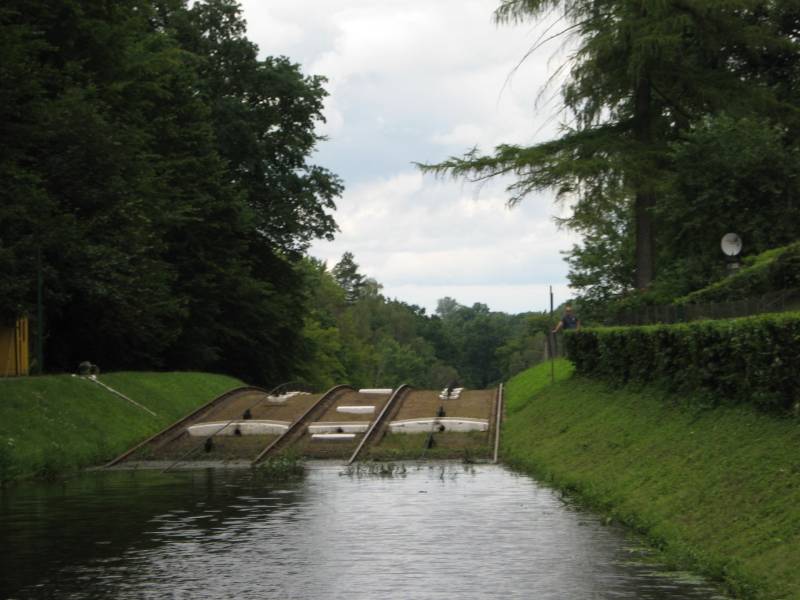 powyżej łąk, tak zbudowano koryto Kanału. Szczególne wrażenie jest na zakrętach - jakby