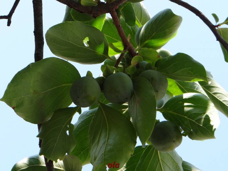 Niedojrzałe jeszcze owoce kaki .