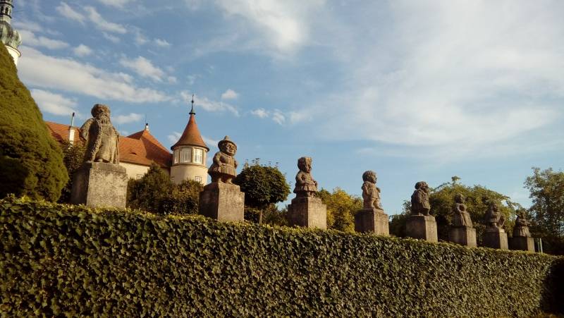 Wejścia na zamek strzegą dwa niedżwiedzie.Tutaj z kamienia.Na zamku w Nachodzie są żywe, ale o ty innym razem.