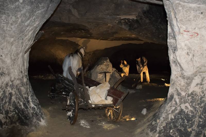 Podziemne komnaty są delikatnie podświetlone i wyposażone w makiety ilustrujące wydobycie piasku