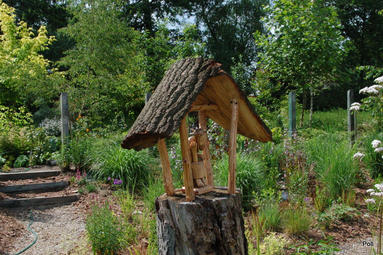 Mój Frasobliwy, doczekał się w koncu swojego miejsca. hu_rra We wspaniałym prezencie imieninowym, mój pomocnik ogrodowy - Marcin osadził drewniana figurkę na postumencie z pnia i osłonił ja daszkiem z kawałków nieokorowanego drewna.Dokładnie tak to widziałam i gdy zobaczyłam gotowe dzieło w centrum trawowiska, szalałam z radości hu_rra hu_rra hu_rra hu_rra hu_rra