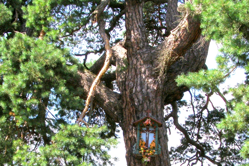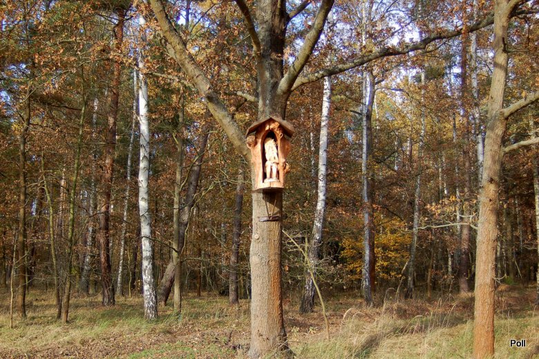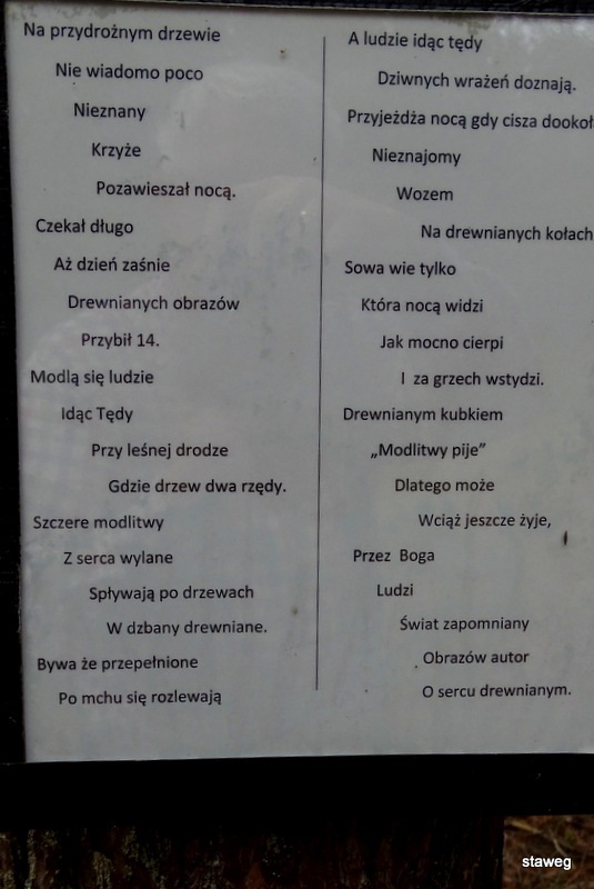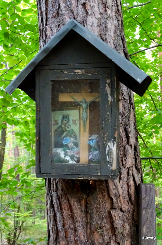 Pisząc o kapliczkach w lasach pomiędzy Budami Łańcuckimi a Żołynią wspomniałem o pewnej tajemniczej sprawie. Otóż, mniej więcej w połowie drogi pomiędzy kaplicą Św. Antoniego, a kaplicą Św. Huberta odchodzi droga leśna w kierunku Korniaktowa Płn. Przy tej drodze, na leśnym dukcie wiodącym na niewielkie wzgórze ktoś nieznany, wiosną 1992 r. umieścił kapliczki Drogi Krzyżowej. Są to kapliczki nadrzewne, rodzaj dużych pasyjek.