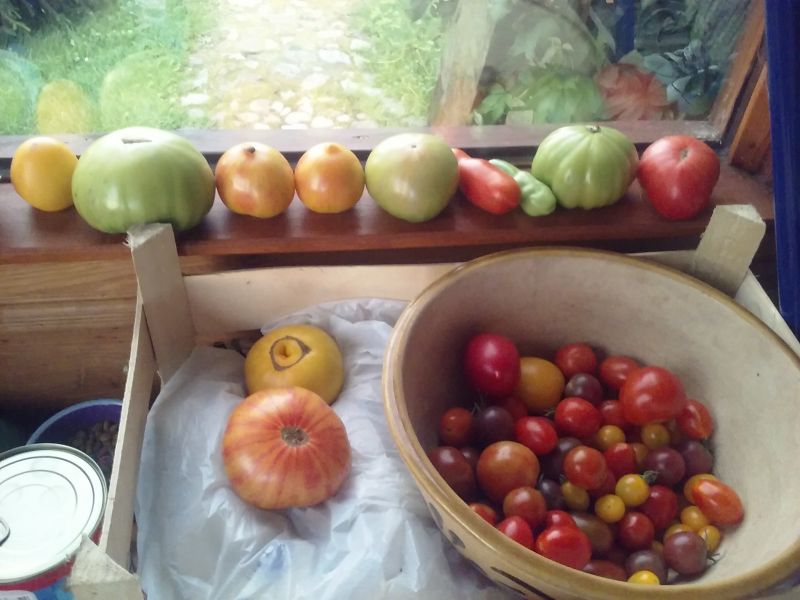 Leży tu na parapecie, ten największy zielony z lewej. Jest przepyszny. Robiliśmy niedawno degustację moich pomidorków i wszyscy byli zgodni, że ten jest najsmaczniejszy.