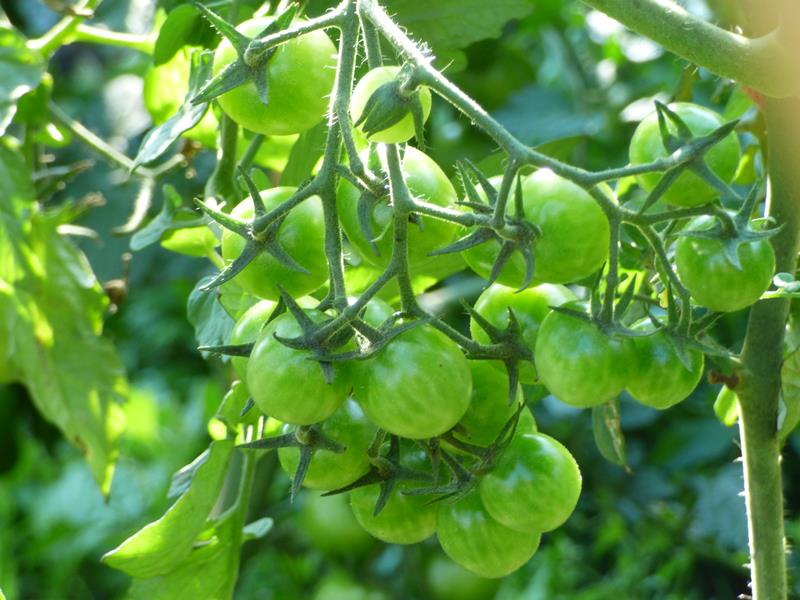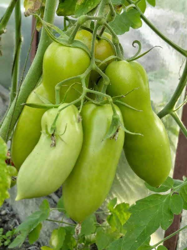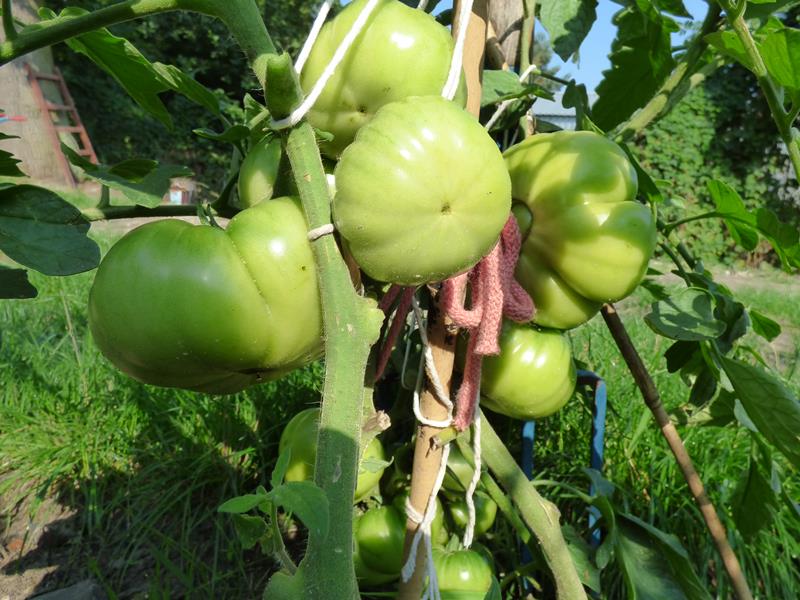 Moje tez pomału nabierają masy. Miały w tym roku sporo pecha, bo najpierw wiatr przewrócił mi szklarenkę, przez co część pomidorów się połamała i straciła etykietki. Potem tydzień po wsadzeniu do gruntu przeszła nawałnica z gradem i ubiła je prawie do ziemi. Na szczęście wszystkie przeżyły i mimo opóźnienia spowodowanego przez konieczność regeneracji zawiązały owoce.